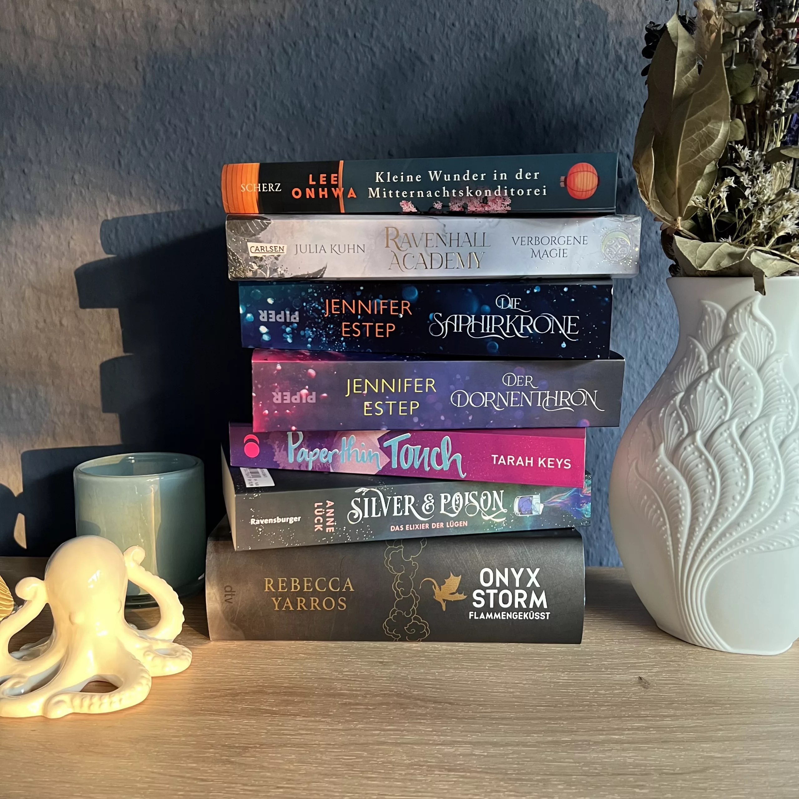 Reihen beenden, z.B. „Leichenblässe“ von Simon Beckett und „The Storm“ von Virginia Bergin, und den Rest meiner „12 für 2025“-Liste, z.B. „Die Päpstin“ von Donna W. Cross und „Onyx Storm“ von Rebecca Yarros, und „SuB-Senioren“, z.B. „Sense of Danger“ von Jennifer Estep und „Die Gilde der Schatten“ von Nicole Gozdek.